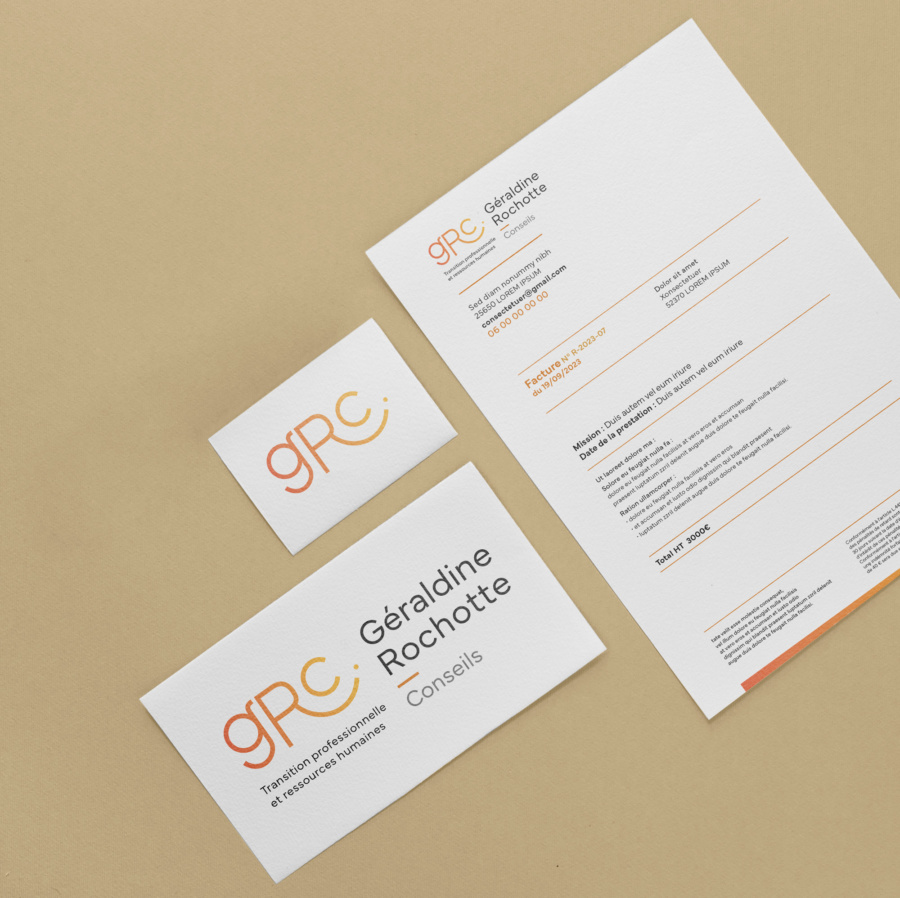 Création de l’identité visuelle de Géraldine Rochotte, consultante en transition professionnelle et ressources humaines basée sur Saint-Dié-des-Vosges.
