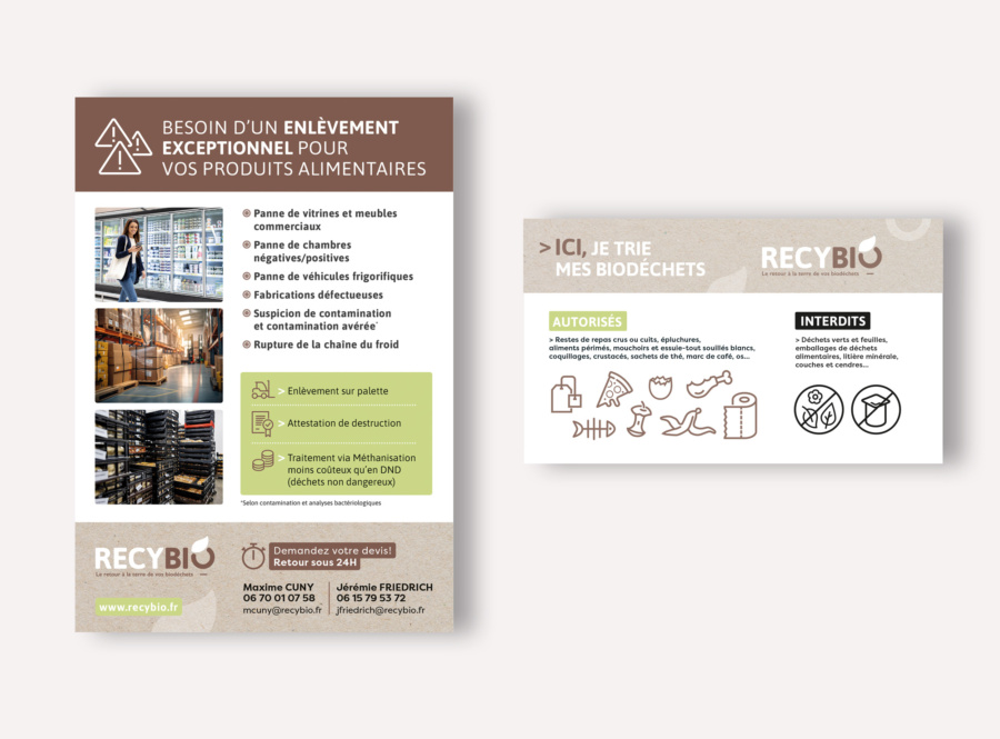 Déclinaisons de supports pour Recybio (société du groupe Schroll pour le traitement des biodéchets)